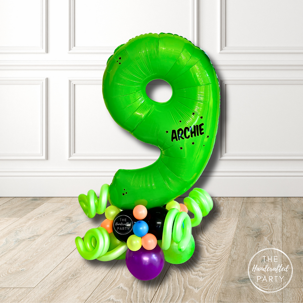 We can personalise your number balloons with a name using premium vinyl lettering.